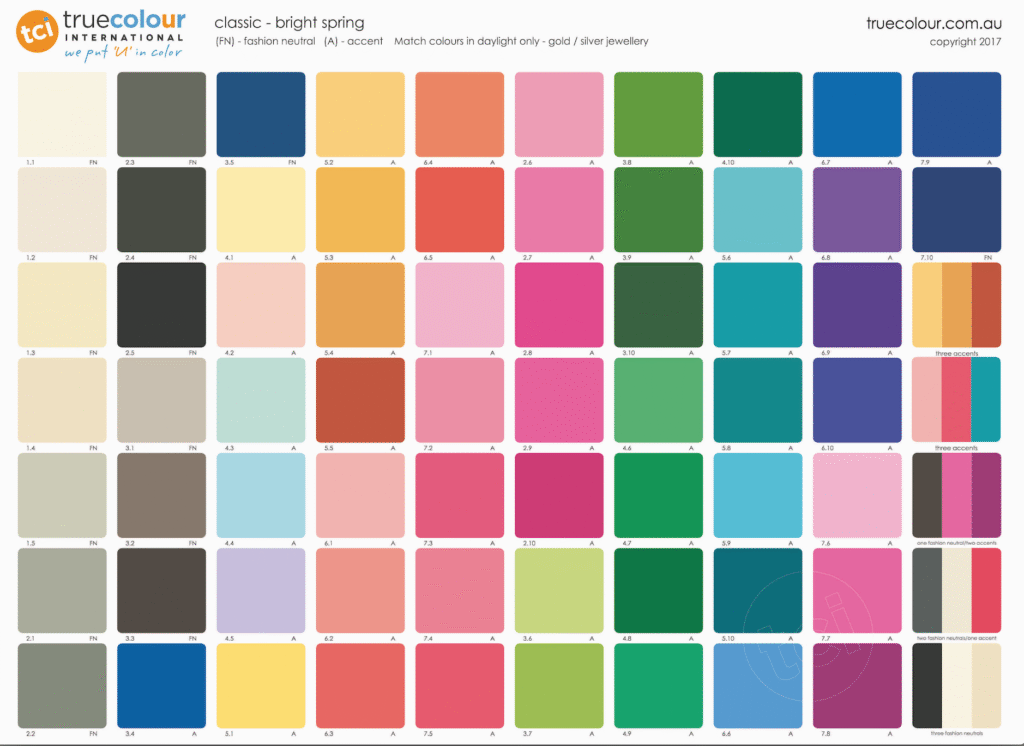 Přečtěte si vše o paletě Jasné jaro – Bright Spring, jedné z dvanácti palet True Colour International (TCI) v barevné typologii neboli colour analysis.
